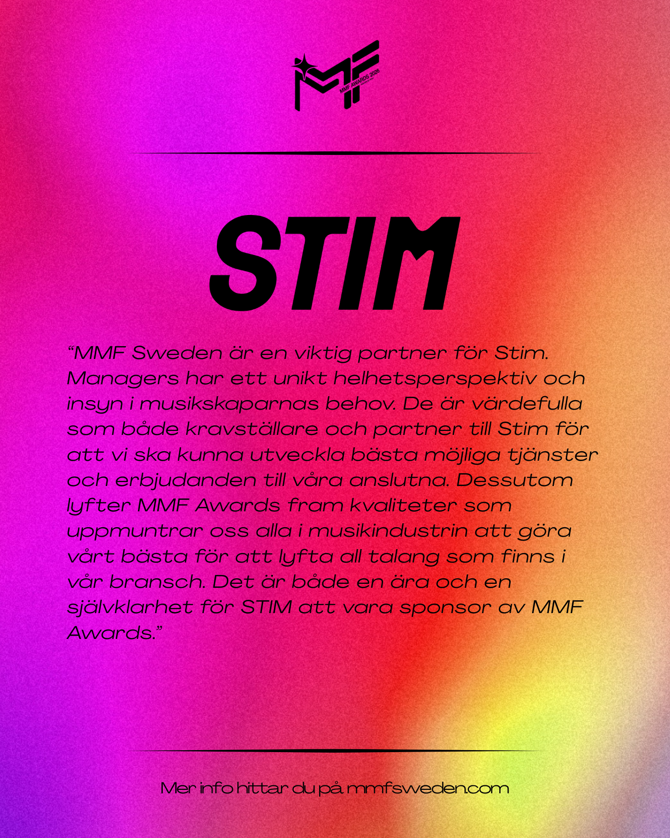Vi är otroligt glada och stolta över att presentera årets sponsorer till MMF Awards!